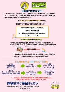 E-CAMP自由が丘校では、2月に体験会イベントを実施いたします。